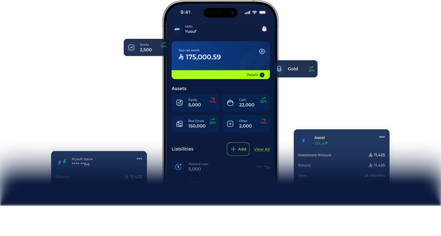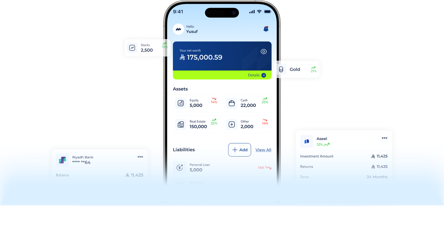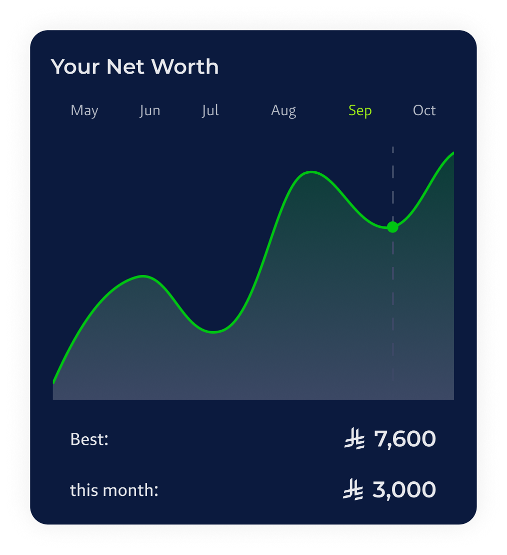 Stay in control with real-time updates on your net worth, assets, and liabilities. Visualize your financial progress with intuitive charts and detailed breakdowns